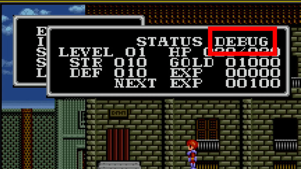 そのままゲームを開始してから「STATUS」の画面をメニューから呼び出し、2コンのセレクトボタンを押したときに「DEBUG」の文字が表示されると成功です。