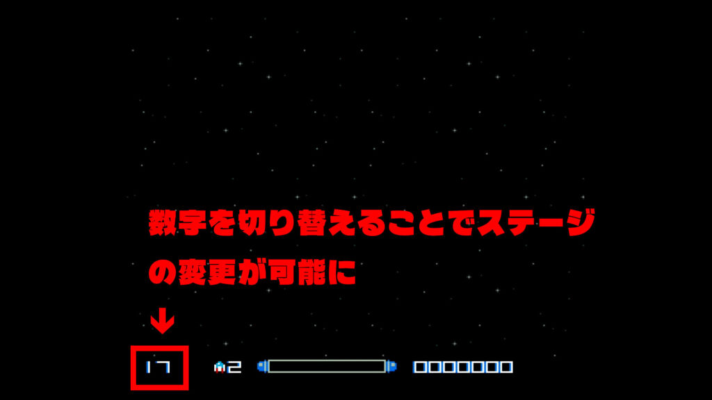 画面左下が数字に切り替わるので、十字キーで数値を変えてスタートを押すと選んだステージがプレイ可能になります。