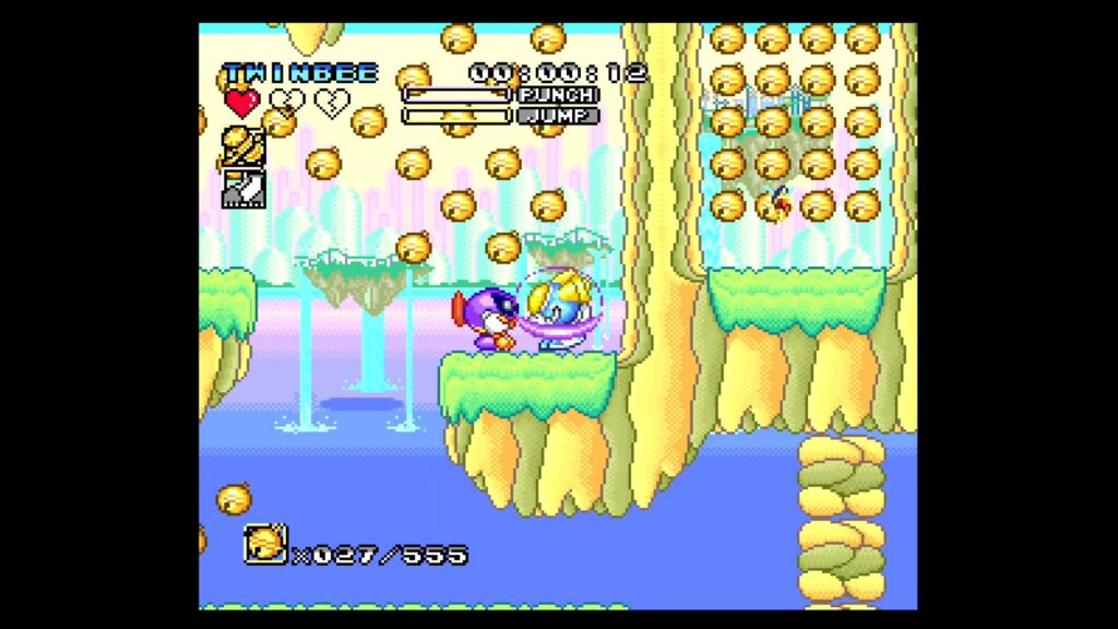 コナミより、1994年1月7日に発売された『ツインビー~レインボーベルアドベンチャー~』。本作はシューティングゲームではなく、『ツインビー』に登場するキャラクターたちが活躍するアクションゲームとなっています。その無敵技がこちら。