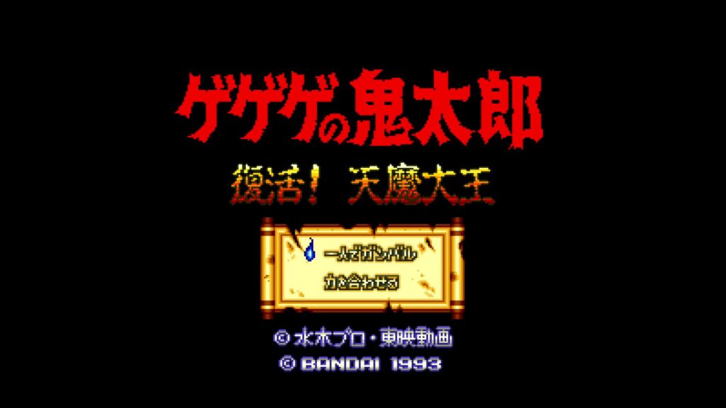 バンダイより、1993年2月5日に発売された横スクロールアクションゲームの『ゲゲゲの鬼太郎 復活! 天魔大王』。本作の裏技がステージセレクトです。裏技を使うときは、タイトル画面でこちらのコマンドを入力してオプション画面を表示させます。