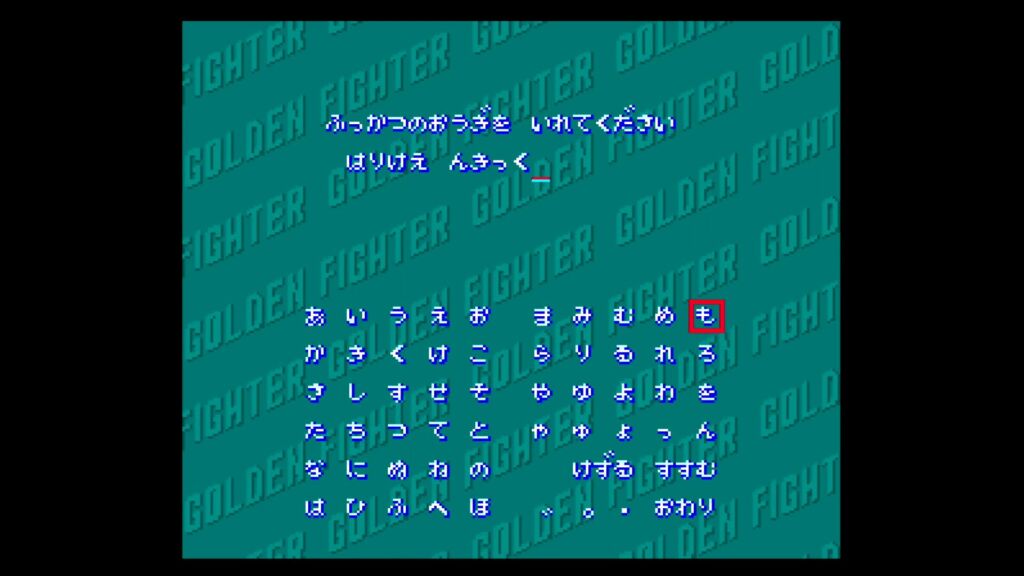 カルチャーブレーンより、1992年7月31日に発売されたアクションゲームの『飛龍の拳Sゴールデンファイター』。本作の裏技がいきなりエンディングです。こちらの裏技を利用するときは、まずメニューから「ストーリー」または「アニメモード」を選び、「ふっかつのおうぎ」に「はりけえんきっく」と入力すればOKです。