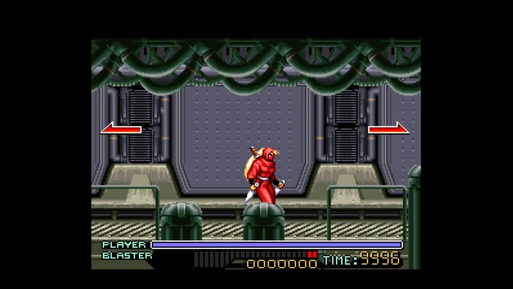 タイトーより、1994年1月28日に発売されたアクションゲームの『ザ・ニンジャウォーリアーズ ~アゲイン~』。こちらの裏技がステージセレクトです。利用するときは、タイトル画面でこちらのコマンドを入力します。