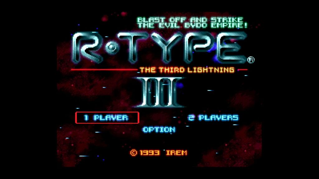 アイレムより、1991年7月13日に発売されたシューティングゲームの『スーパーR-TYPE』。本作の裏技がステージセレクトです。裏技を利用するときは、まずレベル選択の画面で下記のコマンドを入力します。