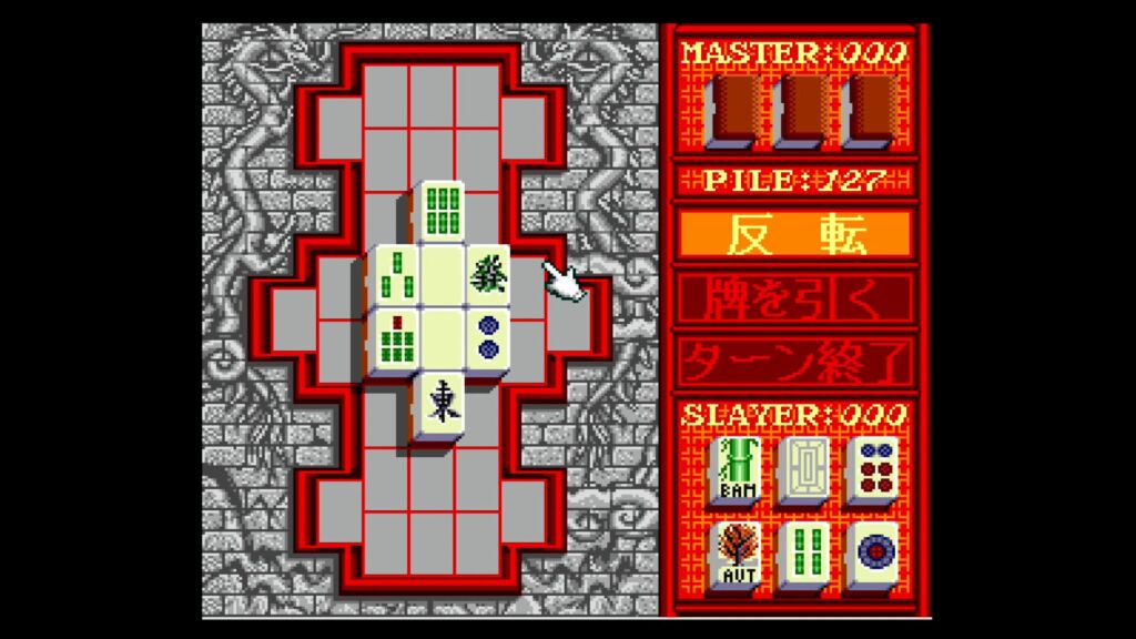 ホット・ビィより、1992年4月28日に発売されたパスルゲームの『スーパー上海ドラゴンズアイ』。本作は、一般的な『上海』に加えて『ドラゴンズアイ』と呼ばれる異なるゲームが遊べるのが特徴です。実際に『ドラゴンズアイ』をプレイするときは、1度『上海』をプレイしている途中でメニューを呼び出すというUIになっていますが、それをショートカット的にプレイできるようにするというのがこちらの裏技。