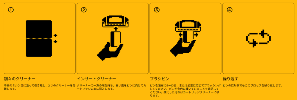 - 付属のカートリッジクリーナーでカートリッジピンを確認し、清掃してください。