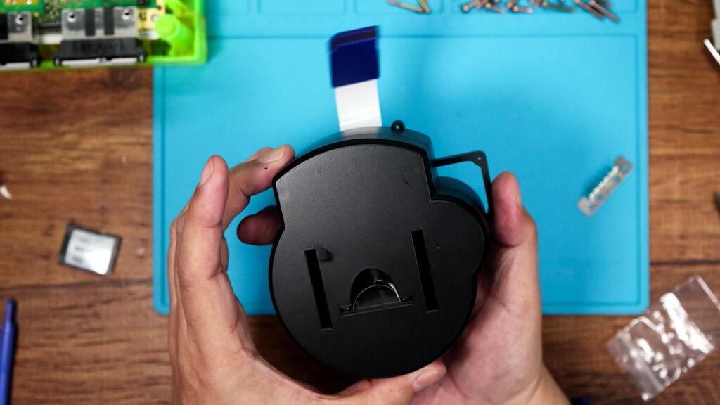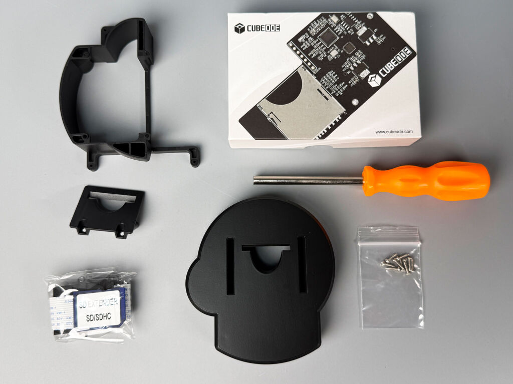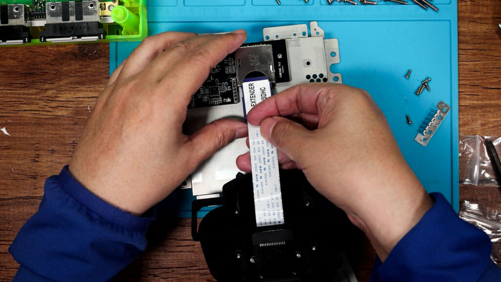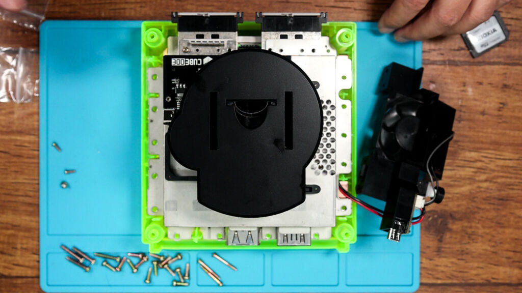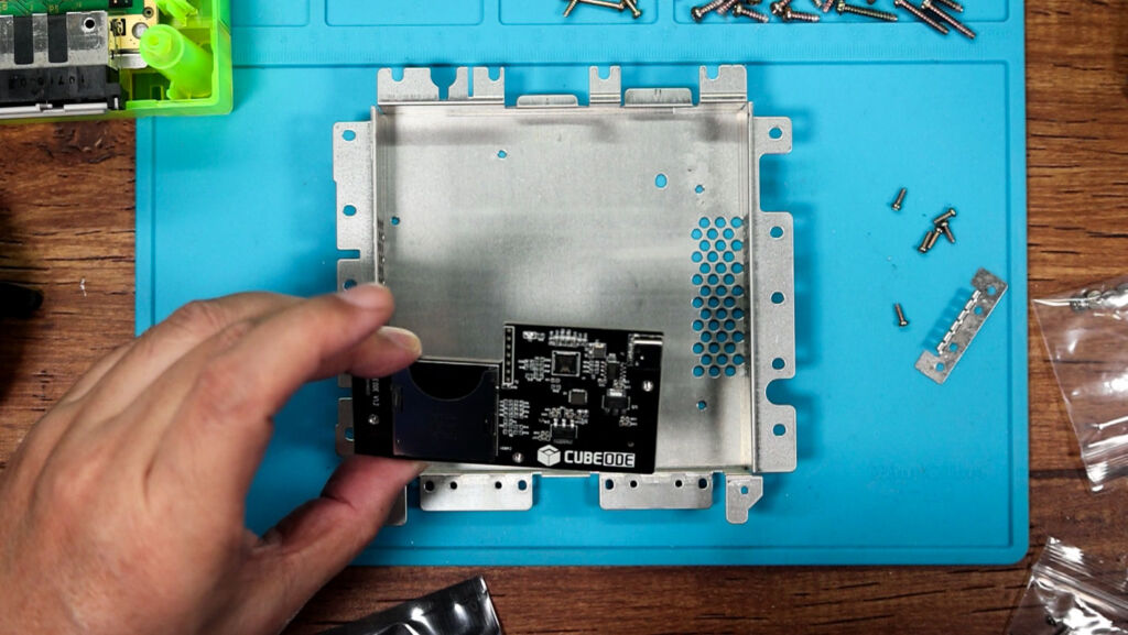 『CUBEODE』を取り付けたら、先ほど組み立てた3Dプリントのパーツから出ているSDカードをさしておきます。その後は、それぞれのパーツやネジを新たなシェルに付けていけばOKです!