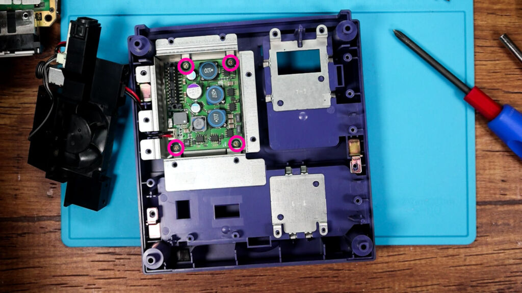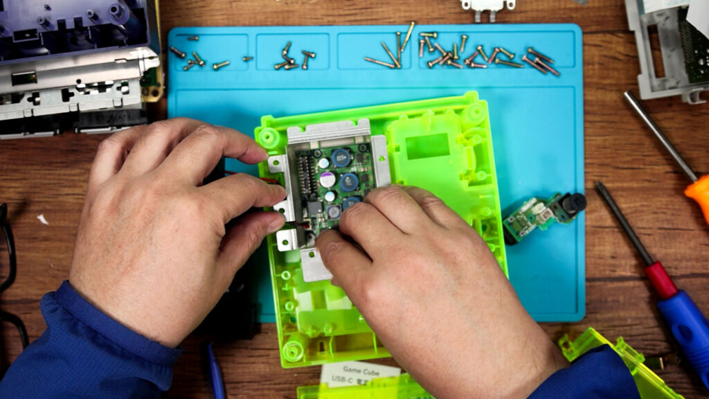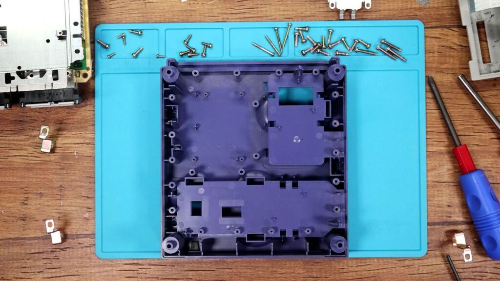 なにせこのゲームキューブ、ざっくりいうとハンバーガーのように四層ぐらいに積み重ねられていることに加えて、結構な数のネジを外していかなくてはならないからです。といっても、ものすごく複雑なのか? というとそういうわけでもなく、単純に面倒という……笑。