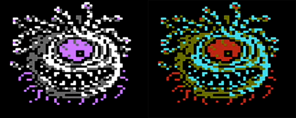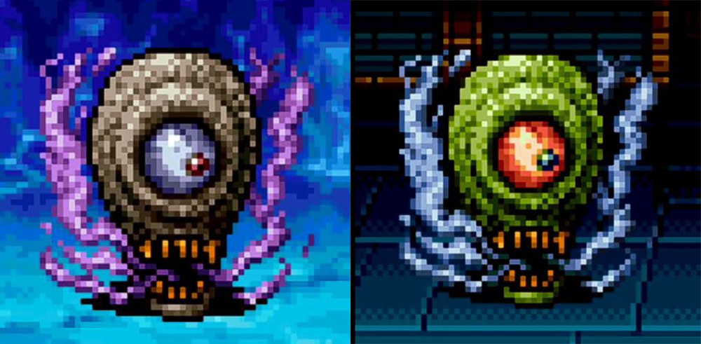 じつはこのふたつのソフトの間で変更されたのが、モンスターのグラフィックです。変更が加えられたのは、「氷の洞窟」などに登場したモンスターの「ビホルダー」と上位版の「デスビホルダー」です。その名称から、テーブルトークRPGの『ダンジョンズ&ドラゴンズ 』から引用されているように見えますが……この見た目が大きく変更されていました。