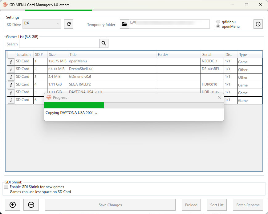 非常に大きな誇りを持って、私の新しいバージョンのopenMenuとそれに伴うカードマネージャーソフトウェアをリリースします。これにより、GDEMUに仮想フォルダー/サブフォルダーが初めて導入されます(それ以上の機能も)!