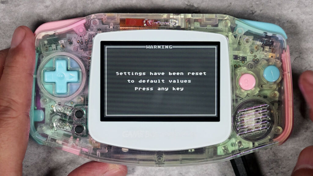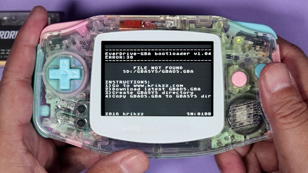 たとえば『EverDrive-GBA X5 Mini』の場合、「GBASYS」と呼ばれるシステムが入ったフォルダをmicroSDカードに入れておかないと、起動時にエラーが表示されます。しかし、『EverDrive GBA PRO』ではそうした手順は不要で、フォーマットしたmicroSDカードを挿入すると最初に初期セットアップを行ってくれるのです。