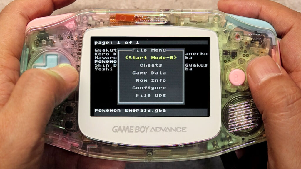 2026年1月6日に更新されたファームウェアで、「モードB」にも対応しました。この「モードB」とは、別のフラッシュカートリッジの『EZ Flash Omega Definitive Edition』に採用されている機能のひとつで、あらかじめ特定のゲームを設定しておくことで、そのゲームが直接起動するようになるというもの。