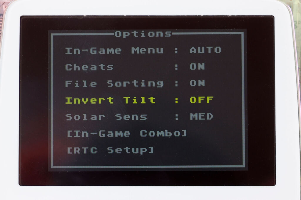 また機種によってはカートリッジを指す向きが上下逆さまになる場合がありますが、この傾斜を反転したいときは同じく「option」内の「Invert Tilt」をONにすることで対応が可能です。