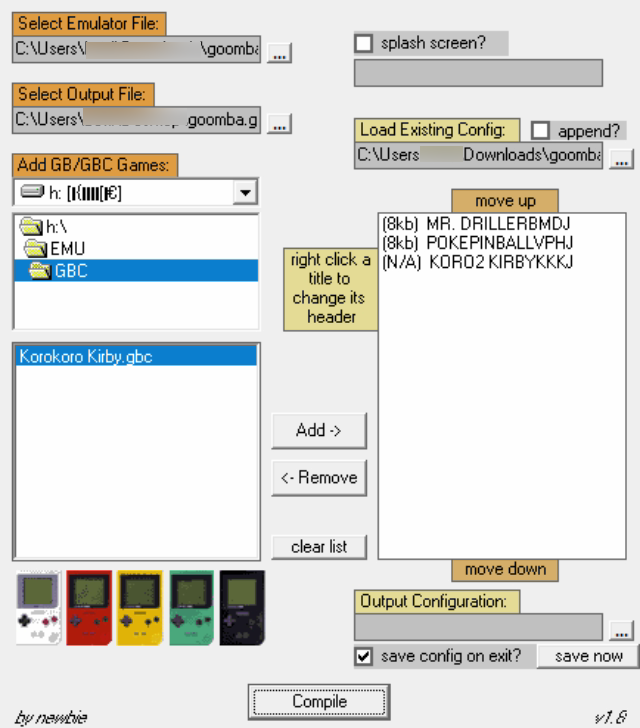 手順自体はゲームボーイカラーもファミコンもそれほど大きな違いはありませんが、これらのツールを使って抽出したROMを、エミュレーター専用のフォルダに入れておきます。あとは、そのファイルを選べばエミュレーターが起動して遊べるようになります。