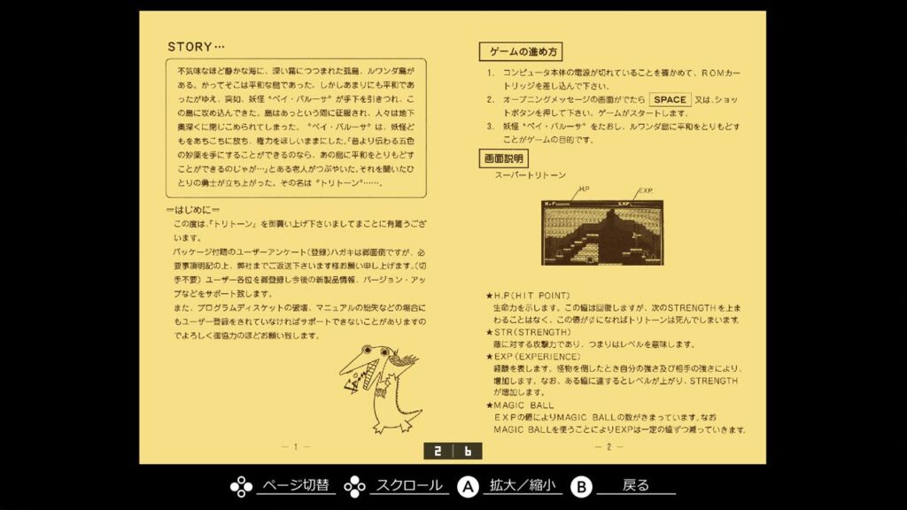 本作は1986年にザインソフトから発売されたサイドビューのアクションロールプレイングゲームです。プレイヤーは勇士トリトーンを操作して、数々のモンスターと戦い、ペイ・バルーサに支配されたルワンダ島に平和を取り戻す冒険に出発します。