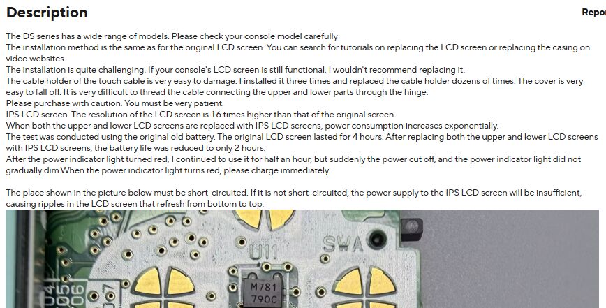 また、Paulo da Retro Boy!氏は、液晶は元の4倍の1024×768になるはずだとも述べています。しかし、価格は少々割高になる模様。たとえばゲームボーイのIPS液晶ディスプレイは1枚あたり6100円~7600円程度。しかし、このニンテンドーDS Lite用のものは、1枚あたり1万円から1万2000円ほどになるようです。