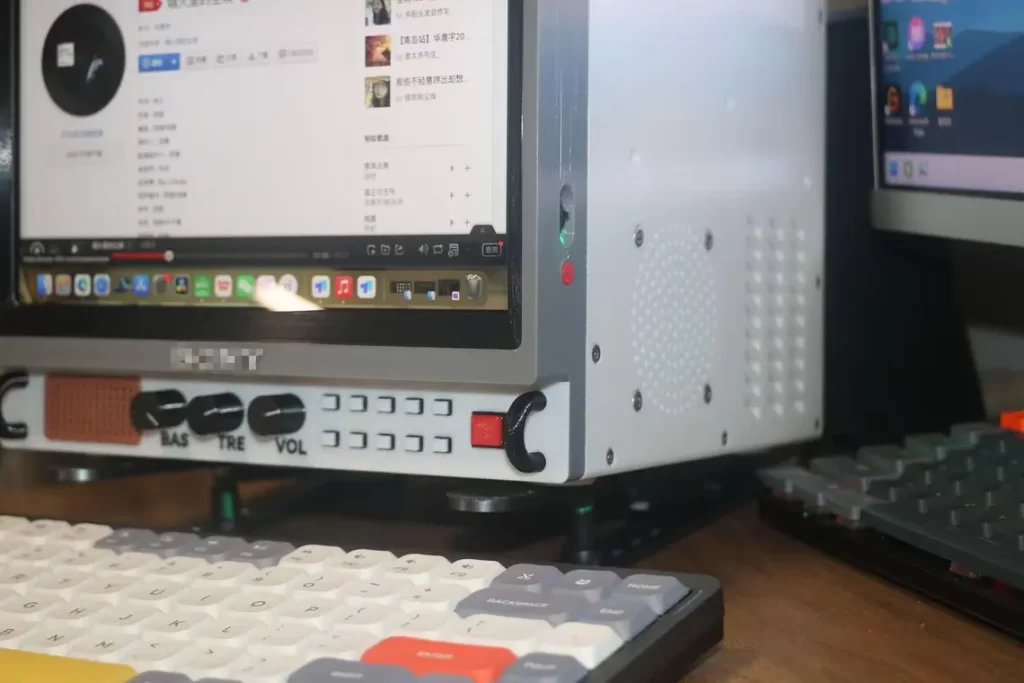 こちらのディスプレイですが、クラシカルなブラウン管ディスプレイにインスパイアされたモデルとなっており、筐体はマットな仕上げになっているほか、クタイルノブ、そして230×220×180mmというコンパクトなサイズが魅力となっています。